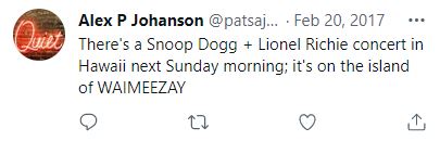 That paved the way for a few years later when Hamilton became huge and they were accepting video auditions. Having had some experience as an actual lawyer, I figured that pretending to be one on stage wouldn’t be too much of a stretch. I wrote a quick verse and, taking inspiration from a classic tweet by @patsajax, my submission was ready.